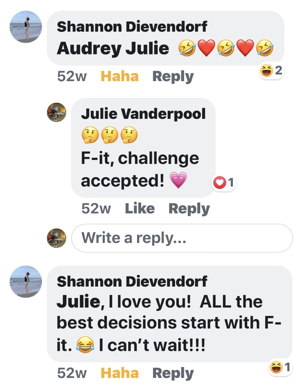 Many of you know how the next day turned out and I cannot wait to share about all the AMAZING things that have happened since then but a year ago TODAY is where I simultaneously lost my mind and found my way. A year ago today I made one of THE BEST decisions of my life and it started with “F-it.”